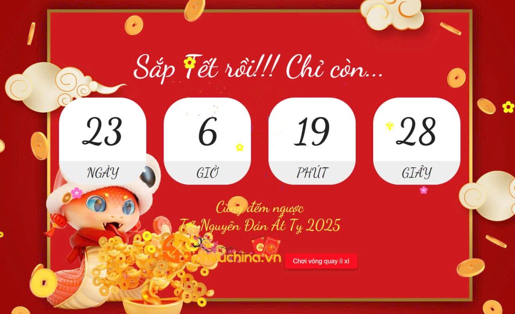 Thế là một năm cũ sắp trôi qua. Một năm mới nữa lại tới. Để hoà cùng không khí năm mới DichvuChina chia sẻ một tiện ích nhỏ đó là “Đếm ngược tới Tết Nguyên Đán” ngoài ra còn Mini Game “Chơi vòng quay lì xì“, “Xem pháo hoa online”